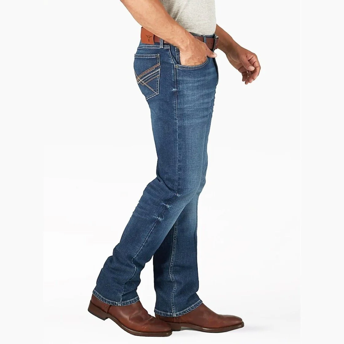 These Western-inspired Wranglers sit just below the waist and come with a slim seat and thigh as well as a straight leg that fits over boots. Plus, our men's 20XĀ® No. 44 slim fit straight leg jeans feature all the authentic WranglerĀ® details you know and added stretch to keep you moving in total comfort. Every wash of our men's 20XĀ® straight leg slim fit jeans features an exclusive back pocket design.Ā